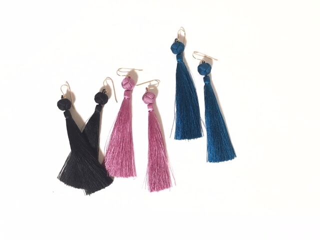一つ一つ丁寧に手で巻かれている京都宇治の昇苑くみ紐の小田巻とシルクタッセルを使用したピアス